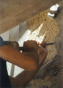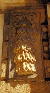 Dresden, Residenzschloss, Johann Georg Starcke, Portal im kleinen Schlosshof, 1682, formschlüssiges Einarbeiten (Arbeits- und Endzustand) einer Vierung am Lorbeer-Feston, Postaer Sandstein |