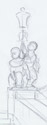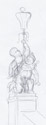 | Curt Roch, vier Kandelabergruppen als Symbole der vier Erdteile, 1895, 1945 zerstört, freie Rekonstruktion der Gruppe "Amerika" (kein hist. Foto mehr vorhanden, zeichnerische Suche nach möglichen Vorbildern bei versch. Putti z. B. in Moritzburg, siehe die beiden Zeichnungen links) sowie Rekonstruktion der Figur "Europa" (nach Foto) in Antragstuck, 2009/10 | |||||||||||||||||||||||||||||||||||||||||||