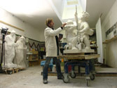 | Curt Roch, Kandelaberfigur "Europa", 1895, 1945 zerstört, hier Rekonstruktion nach Foto mit Edelstahlarmierung sowie vollendet am Bestimmungsort, 2010 | |||||||||||||||||||||||||||||||||||||||||||