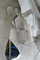 Anfügung abgebrochener Teile, Klammerungen, Retusche Abb.1: Nassreinigung Abb.2-5: Details der weibl. Figur vor und nach der Restaurierung Abb.6-7: Risssanierung/Klammerung am rechten Flügel der männl. Figur und Retusche |