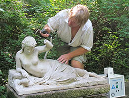 | Quellnymphe, 1996, Kunstmarmor (nach Wolf von Hoyer, 1848, Marmor), Reinigung trocken und nass, Beseitigung biogener Bewuchs, Retusche | |||||||||||||||||||||||||||||||||||||||||||||||