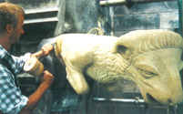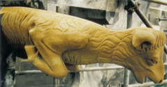 Meißen, Dom, Ferdinand Riedel, Wasserspeier, 1905-08, 1:3-Vergrößerung und Spiegelung (Zirkelverfahren) des von Riedel nur hälftig hergestellten Modells, Postaer Sandstein, 1996 |