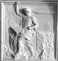 François Gaspard Adam, Allegorie des Feuers, Sockelrelief "Vulkan", 1756, links: stark zurückgewittertes Original mit Gipsergänzungen, rechts: Kopie in Carrara-Marmor, 2008 | |||||||||||||||||||||||||||||||||||||||||||
