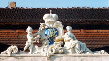 Nathanael Eppen, Allegorien Frühling und Sommer, Wappenkartusche, 1755/56, Ergänzung des Originals als Modell und dessen Kopie in Cottaer Sandstein, 1993/94 |