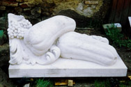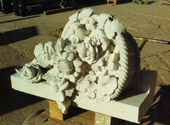 Allegorie Frühling, Detail Blumenkorb, 1755, Kopie des als Modell ergänzten Originals; links Arbeitszustand, rechts fertige Kopie in Cottaer Sandstein | |||||||||||||||||||||||||||||||||||||||||||||