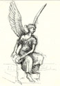 Christian Daniel Rauch, kranzwerfende Viktoria, 1838-45. Beide Flügel wurden 1945 zerstört. Als Vorlage zur Nachgestaltung der Flügel 2003 durch Andreas Klein (Potsdam) und Stefan Dürre dienten die Flügel der größeren Marmor-Version der sogenannten IV. Viktoria in der Walhalla bei Regensburg (links) sowie Gipsabformungen der Bronze-Version der Viktoria in Potsdam- Sanssouci/Orangerie (Zeichnung Mitte) |