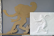 verkleinert modelliertes Relief des Kairos, 15 x 15cm, Ton, hier Stuckabformung des Modells | ||||||||||||||||||||||||