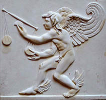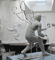 Kairos von Lysipp, Johannis-Hospiz Münster, Nachgestaltung der antiken Plastik von Lysipp (4.Jh. v. Chr.) nach Abguss eines kleineren röm. Reliefs; verkleinert modelliertes Relief des Kairos, 2014-2015 |