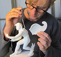 Reduktion des Modells auf ca. 20cm: 3-D-Scan > Skalierung > 3-D-Druck > Abguss in Gips > bildhauerische Bearbeitung | ||||||||||||||||||||||||