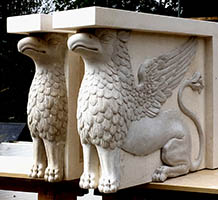Greif an der rechten Armlehne, Original etwa 1910 | Greif an der rechten Armlehne, Modell 2018 | ||||||||||||||||||||