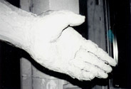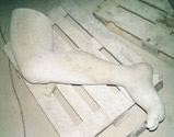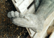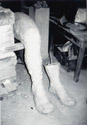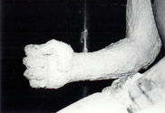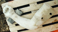 Modell des rechten Armes und die Umsetzung in Cottaer Sandstein, gewonnen