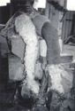 Fortuna, Herstellung der Modelle für die Ergänzungen der Beine (Armierungsstahl, Stroh, Gips) und deren Umsetzung in Cottaer Sandstein, Material wurde aus alten Gesimsstücken des Schlosses gewonnen | ||||||||||||||||||||||||||||||||||||||||||||||||||||||||||||||||||||||||||||||||||||||||||||