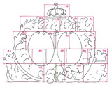 Wappenkartusche, schematisierte Zeichnung mit Fugenschnitt und Aufteilung