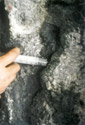 Bereich, der mit Steinersatzmasse ergänzt wurde (KSE mit Steinmehl in einer dem Originalmaterial angepasster sechsteiliger Sieblinie) |