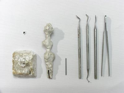 Herrmann Glöckner, Widmungsfigur des Künstlers an Gertraude Stürmer, um 1972, Gips. 14,3 cm hoch, Konservierung und Restaurierung, 2010, hier zerlegtes Original während der Restaurierung und restauriertes Original (rechts) | ||||||||||||||